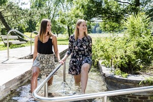 Das Wassertreten: Am schönsten ist es in einem Bach, an einem flachen Seeufer, in einem richtigen Kneipp-Becken, in einem mobilen Kneipp-Becken (erhältlich unter http://shop.kneippverlag.de/), notfalls tut es aber auch die Badewanne zuhause. Das Wasser soll bis knapp unters Knie reichen. Vor Beginn müssen Ihre Füße unbedingt gemütlich warm sein. Nun stapfen Sie wie der Storch im Salat durchs kalte Wasser. Bei jedem Schritt einen Fuß ganz aus dem Wasser heben. Nach 1 bis 3 Minuten wird es unangenehm, Sie fühlen die Kälte schneidend an Füßen und Unterschenkeln. Das ist der richtige Zeitpunkt, um aufzuhören. Danach das Wasser abstreifen und durch Bewegung trocknen.